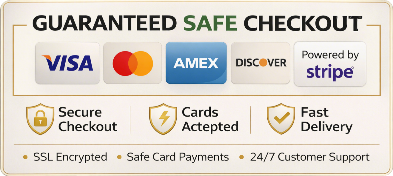 Your payment information is processed through a secure checkout system. We use trusted payment methods and encrypted technology to help keep your personal and payment details protected.